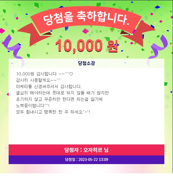 헐.. 2만원 당첨이라니.. 잘못본줄 알았어요ㅎㅎ