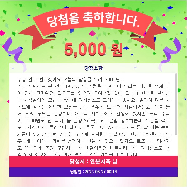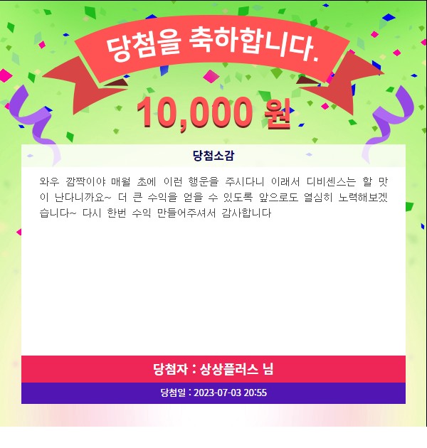디비센스에서는 로그인만해도 매일 2장씩 즉석으로 당첨이되는 선물뽑기 이벤트가 항시 진행 중입니다.